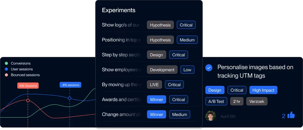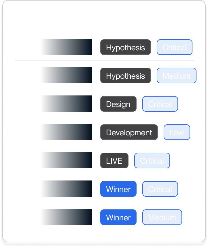 Wij bouwen en lanceren gelijktijdige experimenten. Onze in-house designers en developers regelen alles; er zijn geen interne dev-sprints of tickets nodig om jouw high-impact tests live te krijgen.